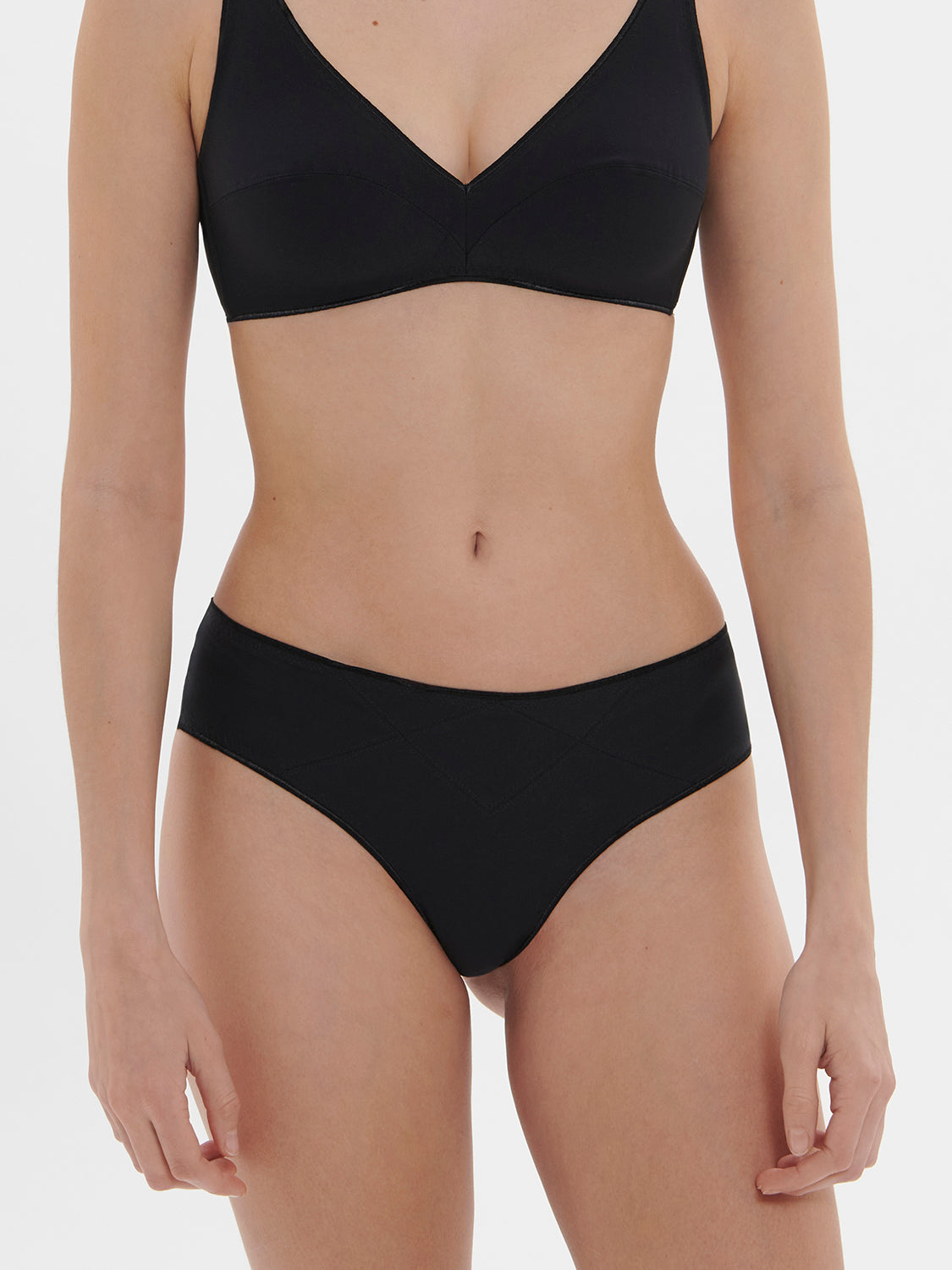 Crafted from a premium French knit and lined with cotton for luxurious softness and a supportive, second-skin feel. Detailed with retro-inspired stitching, gold hardware and satin-effect piping.