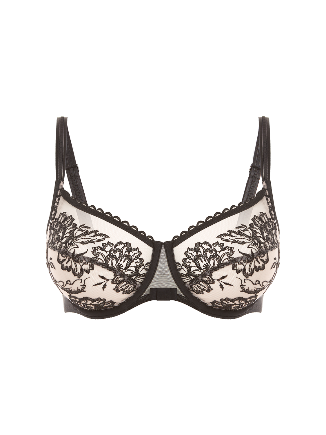 Romance is where desire meets detail—romantic embroidery, softened by scalloped edges.