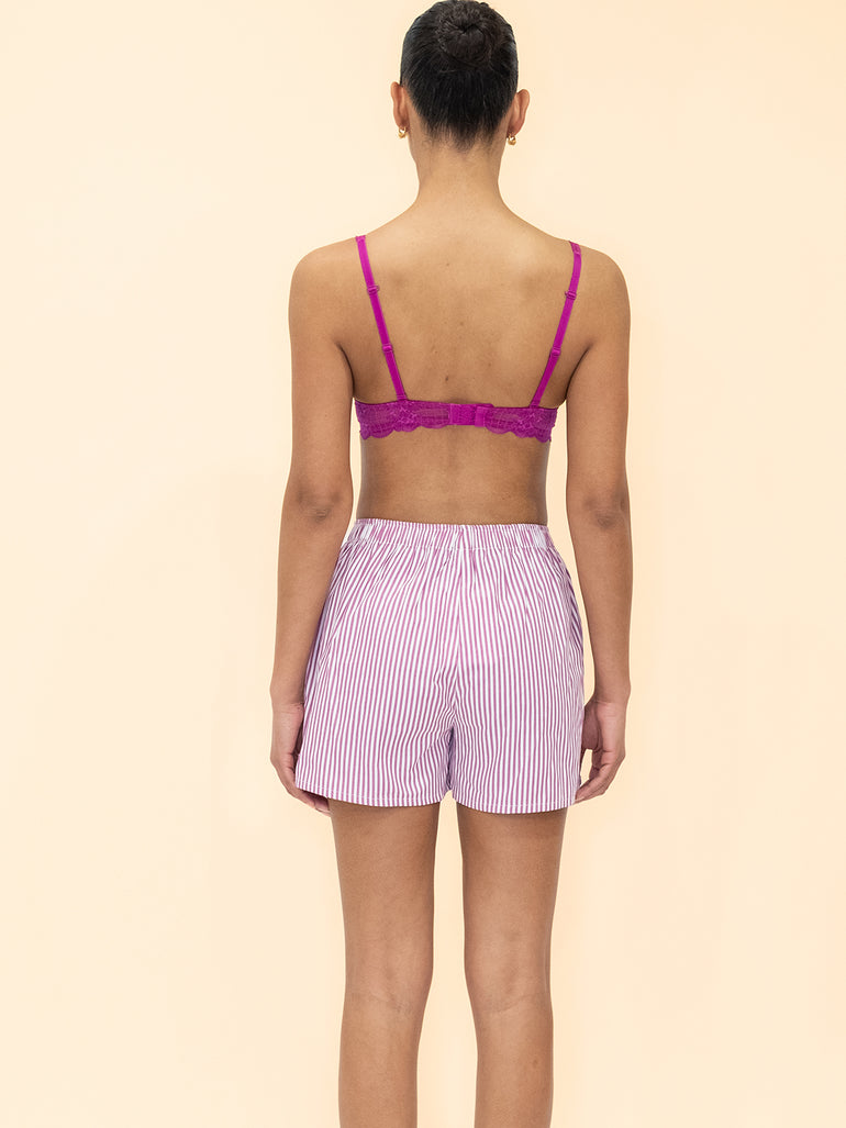 The Pink Stripe Night Short in Pink Azalea is crafted from cotton poly mix for a soft and comfortable night's sleep or lounging in style. These shorts feature a playful pink stripe pattern, adding a touch of elegance to your nightwear collection. These shorts are lightweight and gentle on the skin, perfect for those who love both style and comfort. Simone Perele will donate 100% of the profits of our Night Short to Breast Cancer Awareness to help ensure all Australians have equal access to the best breast cancer care.