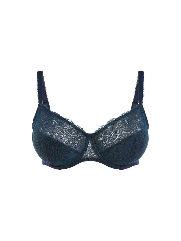French elegance meets everyday support. The Poème Full Cup Contour Bra marries lightness with lift, sculpting with soft stretch lace embroidered in vivid sapphire and emerald. The full cup silhouette centres and flatters the bust, while cotton-lined lower cups and a sleek ballet back offer all-day comfort. Delicate details, a romantic lace design and vibrant colourway make this a modern classic with effortless edge.