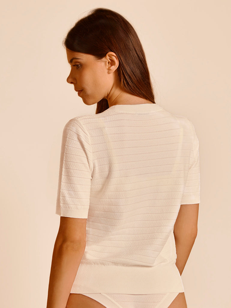 - Pointelle openwork lines.