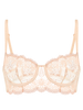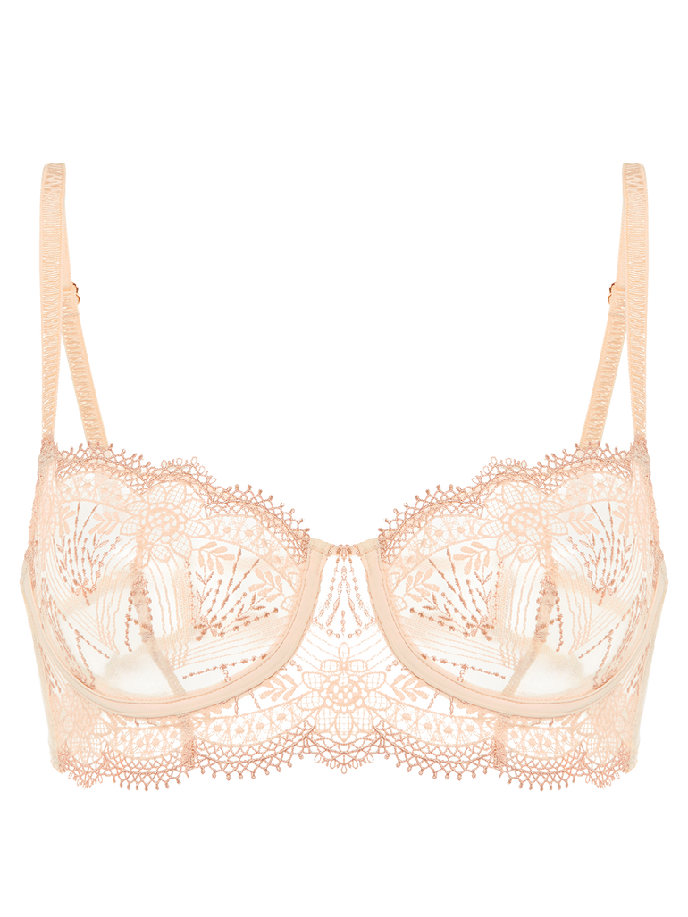 Sheer meets opaque in Allure Half Cup Bra. Express your natural elegance with cups in recycled embroidery and a straight neckline that’s enhanced by guipure scalloped lace edges. The embroidered under-bust provides a mini-bustier effect, enhancing your décolletage and accentuating your natural shape. From the delicate detailing of the lacework to to the finishing touches, this is a bra crafted to be captivating on your figure.