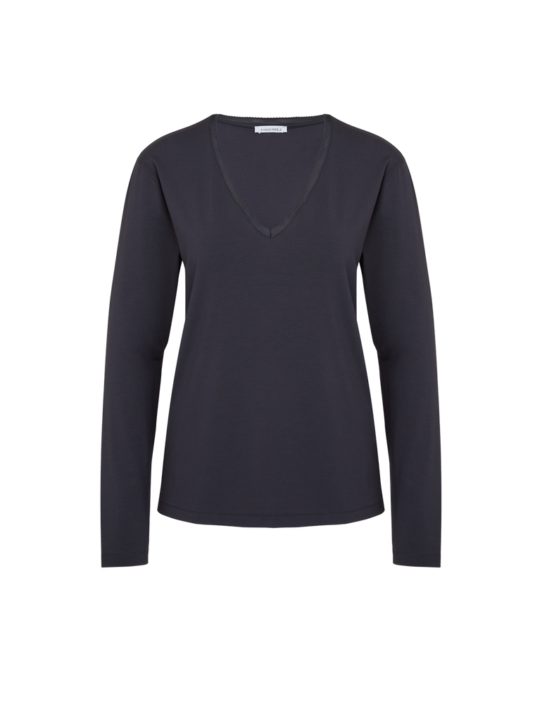 Soft and supple, the exquisite knit fabric of the Aurore Long Sleeve Night Top is designed to fall gently over curves and offers a relaxed fit for all-day comfort and breathability. This round neck top is perfect for a day or night of leisure. Pair with the Aurore Night Shorts for a casually elegant loungewear look. Part of the SIMONE CARES eco-friendly line the main material of this piece contains 95% of LENZING™ ECOVERO™ viscose.