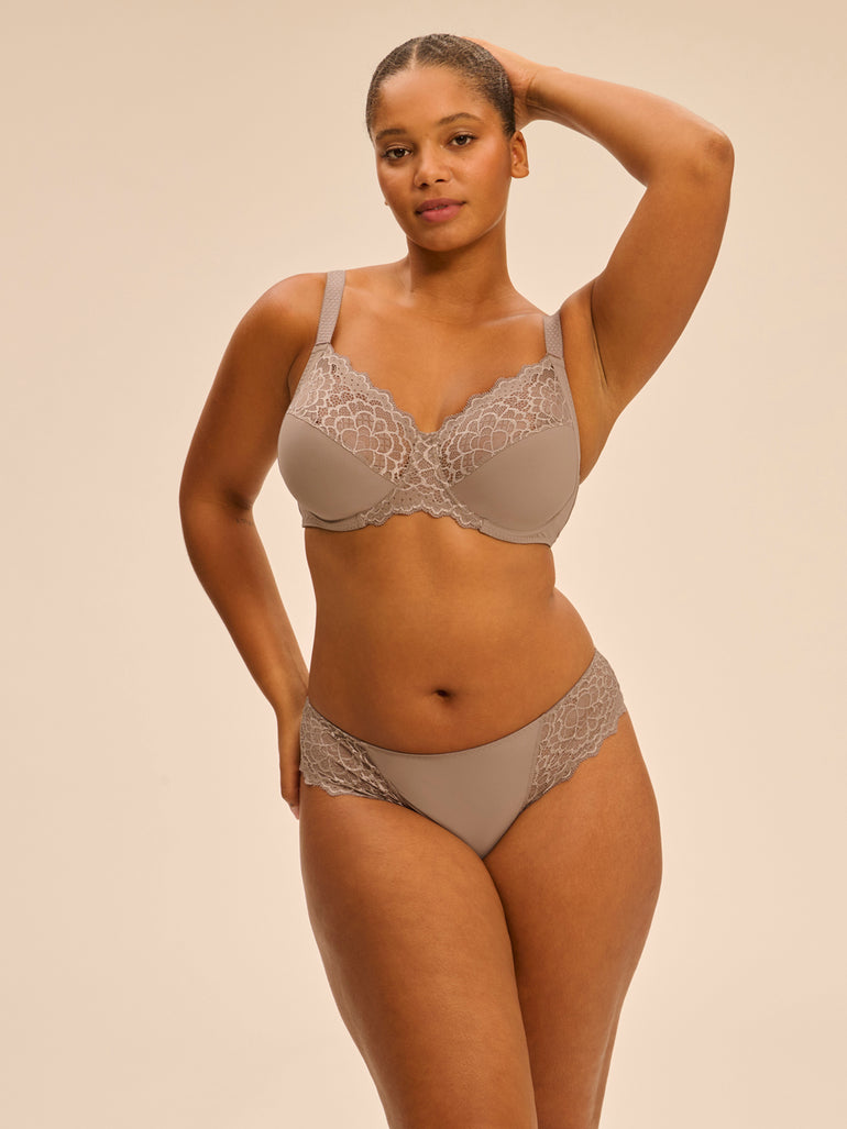 Subtly seductive and impeccably soft, let the smoothest knit lace embrace your skin. The Caresse Bikini Brief is reliable, supportive and up for a good time. Carefully considered in an ultra-soft knit, these bikini briefs offer full coverage as delicate lace brings an air of elegance. As far as lingerie goes, this one’s a top-drawer go-to for classic, neutral clothing.