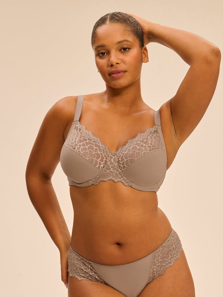 Embrace a new mood as double-cotton lining keeps you cool, calm and supported. The Caresse Control Full Cup Underwire bra feels like it’s been designed just for you. Let this full cup bras smooth moulded cups shape and lift your bust in carefully crafted lace. This bra is your secret weapon under any garment, to slip a little luxury into the everyday.