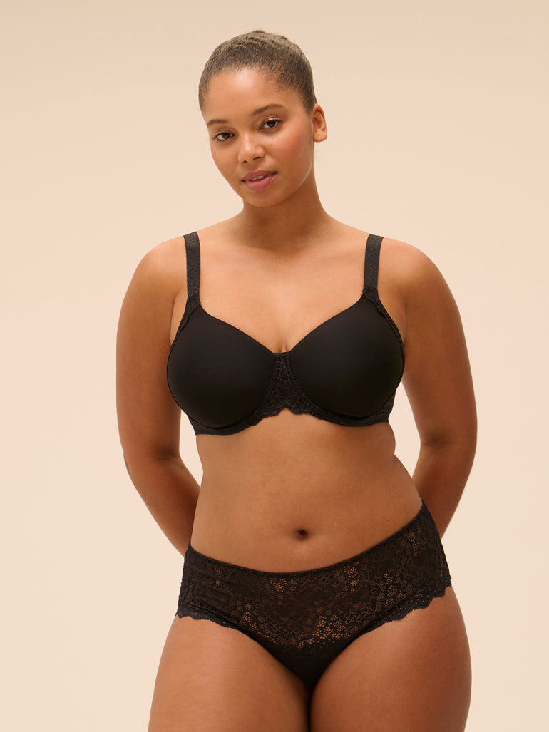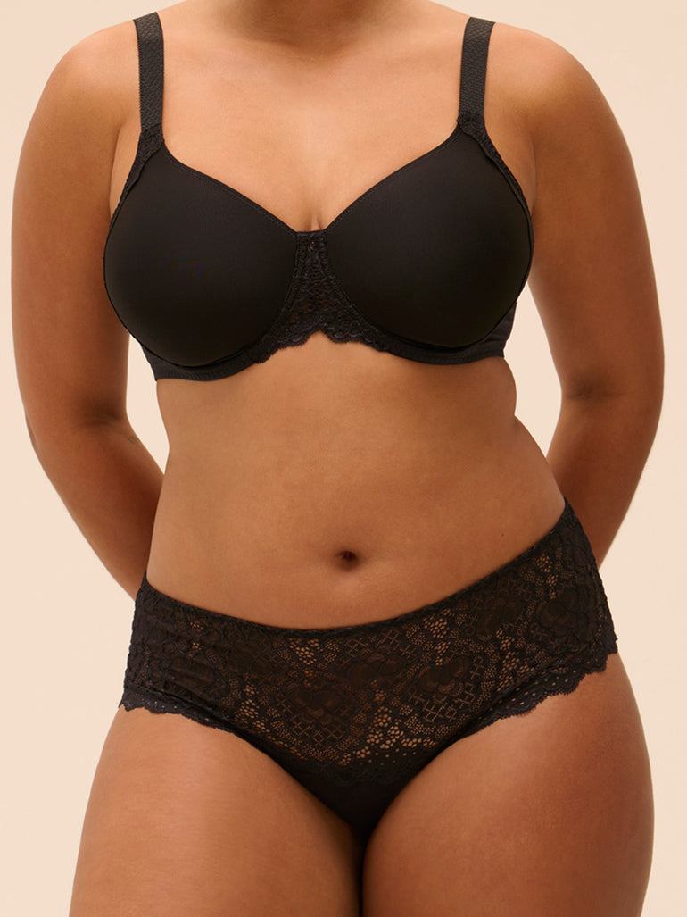 - All-over soft stretch lace with scalloped trim hugs curves for a flawless fit