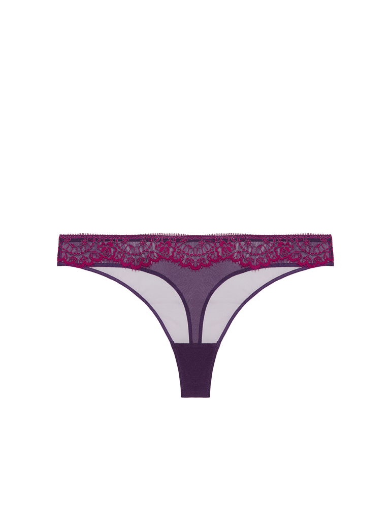 Minimal in style but maximum in sophistication, the Celeste Thong is made for the modern woman who adores elegant finishes in her lingerie. Crafted from sheer tulle, the transparent thong back is enhanced with fine elastic around the thighs for a secure all day fit, whilst gorgeous scallops of contrasting midnight blue embroidery adorn the brief front for subtle, eye-catching style.