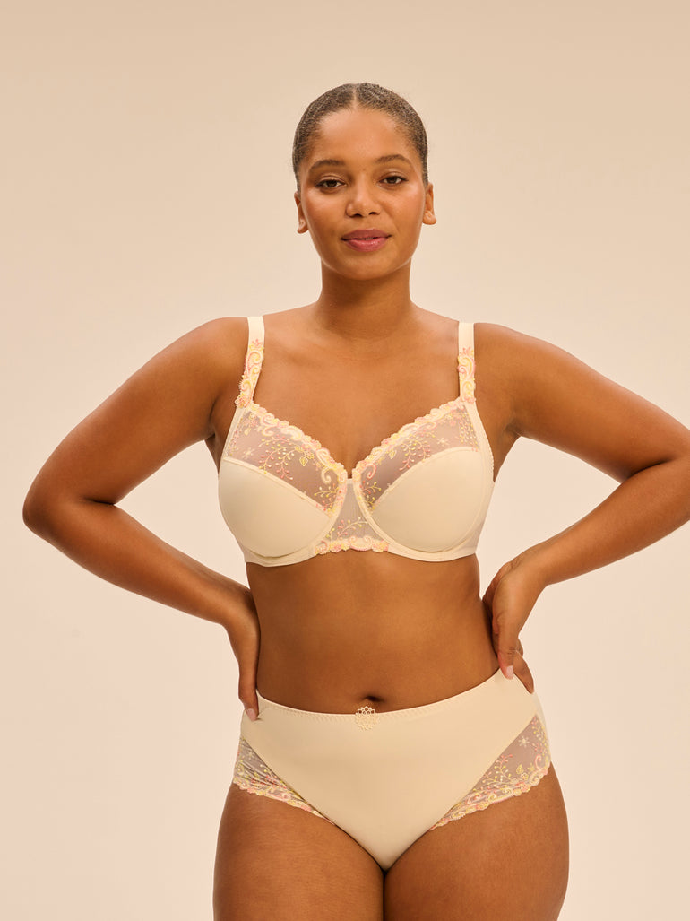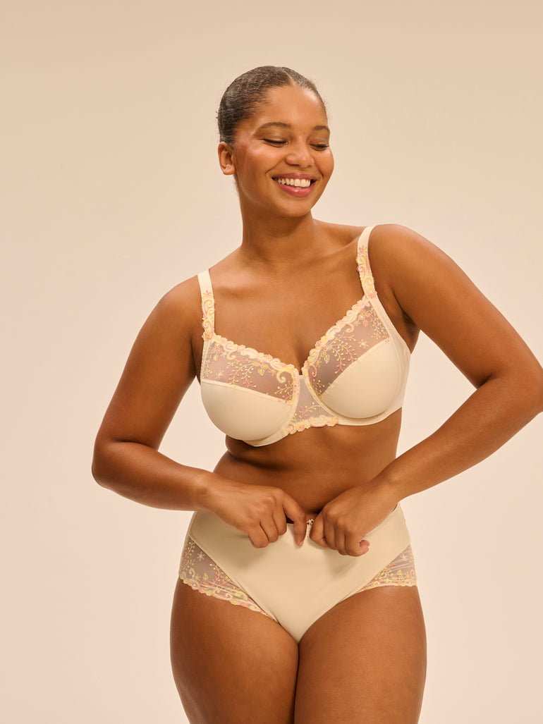 Impeccably crafted with feminine touches, it’s time to give a little love back to what’s naturally yours. The Delice Full Cup Control Bra embraces what makes you beautifully you. This bra enhances your shape, while fine Guipure detailing makes comfort anything but boring. Elevate your outfit with this everyday bra.