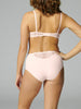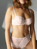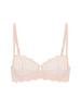 - Unlined semi-sheer cups with inner tulle sling for support and shaping