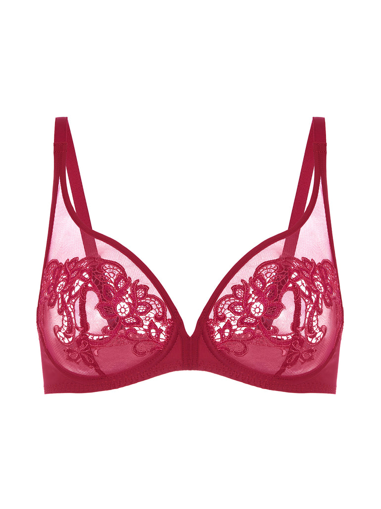 Lace Guipure detailing and a deep plunging neckline marry innovative craftsmanship with luxurious comfort. The Saga Full Cup Plunge bra is a foray into the fashionable traditions of Paris.