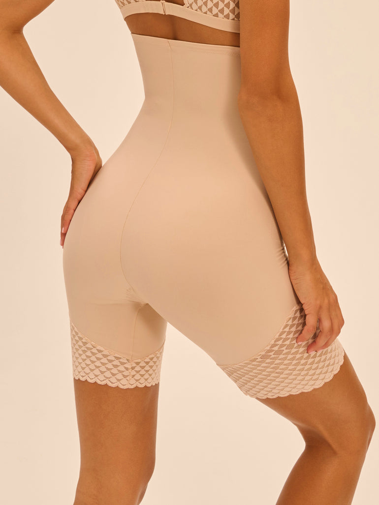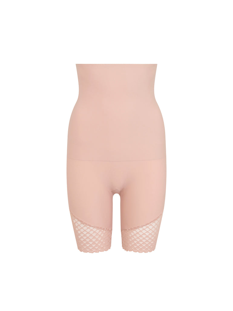 - Stretch lace detail at the thighs lays flat for a smooth fit under clothes