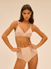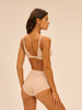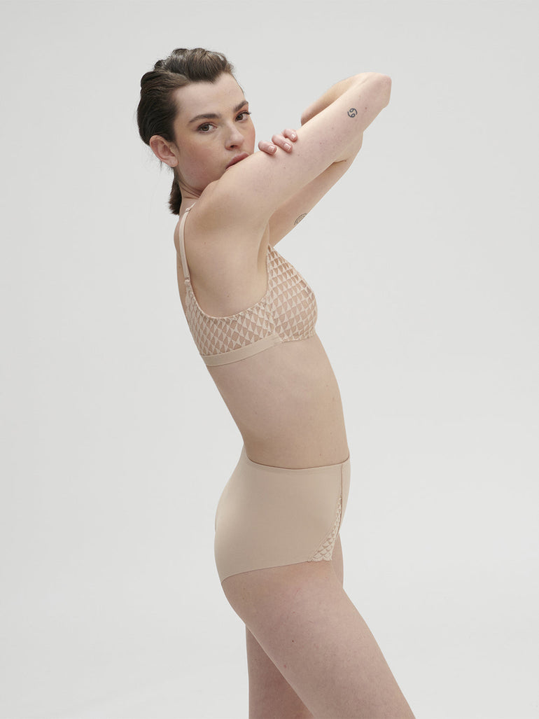Feel sculpted and sexy. The Shapewear Subtile Wirefree Triangle Bra defines your body by utilising control mesh and responsive French lace. Comfort meets curves in this modern piece of lingerie. The cups give a natural shape, defined by vertical seams, while wires on the side panels of this bra sculpt your figure. Along your neckline, a lace trimming kisses your skin, and in the centre of each cup, a knitted fabric juxtaposes against the intricate lace, providing a chic look and added support. Comfort is adorned with a lace ballet back featuring wide elastic that draws three sturdy hook fasteners together. Multiway straps make this modern bra suitable for the outfit of your choice – simply leave the straps in the classic position, or crossover for added invisibility.