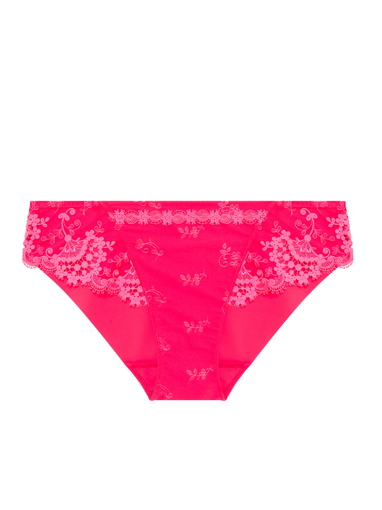 French chic has never been so effortless. This exquisite Bikini Brief in Fabulous Pink is made of ultra-soft stretch Italian Jacquard with panels of floral embroidery on sheer. Ensuring a flawless finish, the back is made entirely of curve-hugging skin-soft microfiber with stitch-free bonding that’s seamless under clothes.