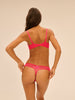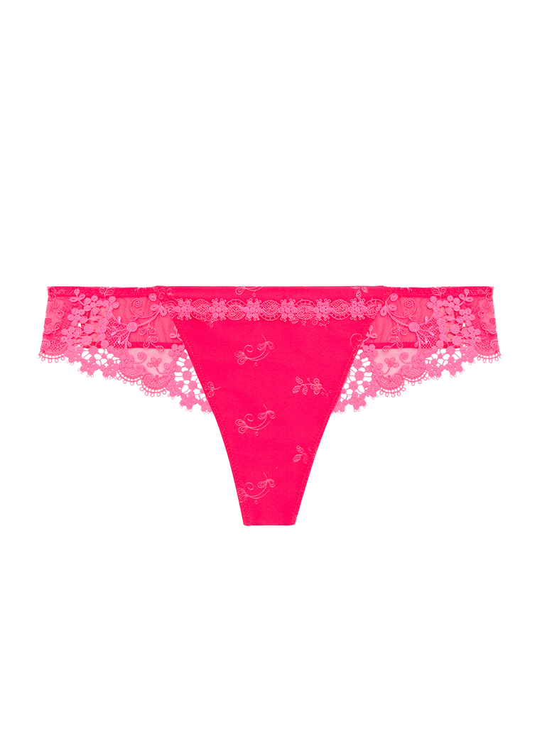 The Wish Tanga in Fabulous Pink is a sleek, sheer thong lavishly detailed with delicate Guipure embroidery that sensually adorns the skin. Pair this thong style with its matching set, and layer under darker garments to exude extra confidence.