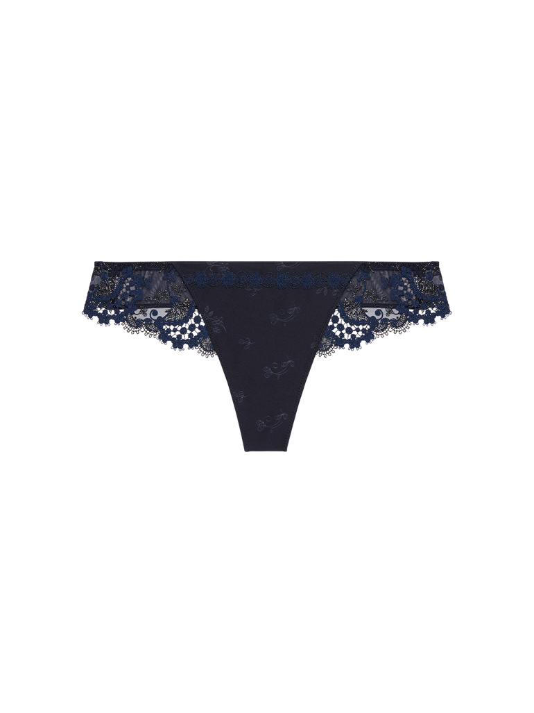 The Wish Tanga in Black is a sleek, sheer thong lavishly detailed with delicate Guipure embroidery that sensually adorns the skin. Pair this thong style with its matching set, and layer under darker garments to exude extra confidence.